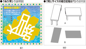 「ぬり字」は、1981年に銀座ソニービルでの展覧会に「漢字の宝島」として出品したアイデアです。その後小学全学年の国語教科書に口絵として掲載され、現在は「漢字の宝島シリーズ」(発売元:奥野かるた店)、「漢字の宝島」(出版元:仮説社)として市販されています。 不必要な線は1本もありませんので、上手に選んでいかないと漢字としては正しくても線が余ってしまいます。 解き方のコツは、周囲から漢字を探してゆくことと、解答欄の空欄に埋まる熟語から見当をつけることです。 図1は、「世界一受けたい授業」(日本テレビ系)でも出題した簡単な問題ですが、皆さんも自分でつくって周りの人を楽しませてみてはいかがですか。 ■同じサイズの絵日記帳は?(21年8/22掲載) この問題は、1981年に心理学者シェパードが発表した錯視図(図2の上図=A)を本にアレンジし、もう一つの工夫を付加したデザインです。 「A」の表紙を切り取って他の表紙に当ててみると、ビックリですね。どう見ても「C」には見えませんし、「B」や「D」との差も素直には納得できません。 図2の下図=Bは、上図のテーブルの上面のみの形です。等しくは見えませんが、上図ほどの差は感じられません。これは立体感を消去してあるからと考えられます。 今回の問題では、不思議感を更に増大させるためにもう一つの要素を加味してみました。シェパードの錯視図ではテーブルが同一平面上(床)に置かれていますが、この問題の中の本は空中にバラバラに、更に表裏もいろいろに変えて置いて表現されていますので、一層効果が増大しています。 本の大きさが事実と異なって見えるのは、このように立体感や遠近感の図法から受ける先入観で判断し誤認してしまう現象です。そのように見えてしまうからといって、あなたに空間認知力が欠けていると不安になることはありません。だれでも事実と異なって見えるのが錯視現象で、不思議に感じることが脳の活性化にもなると言われています。世の中にはこのような見え方もあるということだけ知っておいて下さい。 *「馬場雄二のデザインQ」が5ヶ月ぶりに「一日復活」しました。 パズルに対する志向やフレームのデザインなどは踏襲していますが、夏休み特集ということでファミリー向けのやさしいイメージにしてみました。 みなさんに、より楽しんで頂けるパズル創作の参考にさせていただきたく、個々にご返事はできませんが、ご意見・ご感想などをお寄せ頂ければうれしく思います。 babayuji@poplar.ocn.ne.jp 2009/3/29