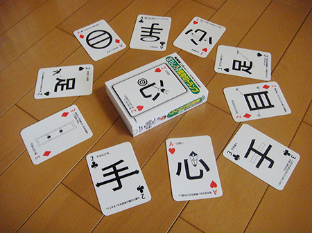 ♠=頭、♣=目、♥=手、♦=足とし、各1〜13に、その漢字に関係する慣用句がデザインされています。 ※普通のトランプと同じようにも遊べます。