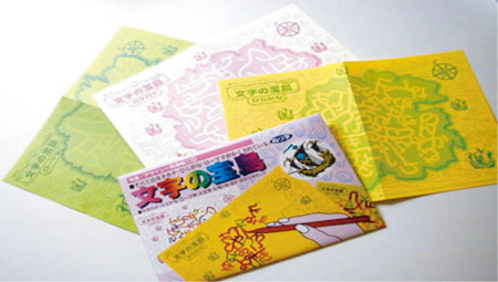 カタカナ、ひらがな、ローマ字(大文字)の全文字が、各シートに「ぬり字」にデザインされています。