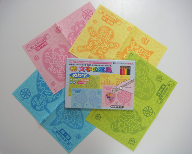 各B4シート4枚セット。色鉛筆6色付き。1365円