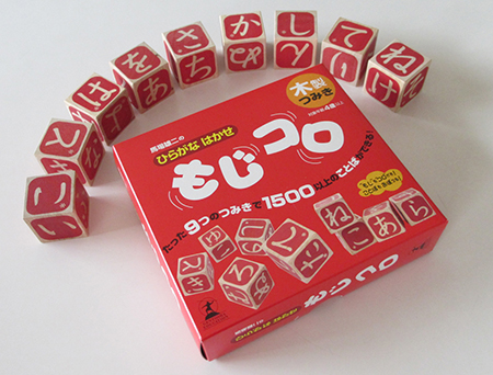 サイコロの6面にある文字を組み合わせて言葉をつくるゲームです。 たった9個のサイコロで小学生でも知っているやさしい言葉を1500以上つくることができます。1人でも何人でも遊べます。