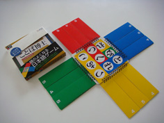 今回はカードゲームではなく、短冊を四方から中央に折り戻してゆく「ゲームブック」を開発し、銀座での個展でも話題になった作品です。遊び方が簡単で何人でも遊べ、かなり盛り上がるゲームですので、是非皆さんでお楽しみください。お求めのお問い合せは学研(03-3726-8248)へ。(2006.2.20)