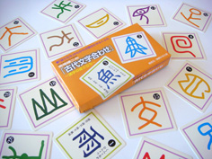 漢字の原点を表現した古代文字から漢字の成り立ちを推理し、古代文字を探すカードゲームです。
