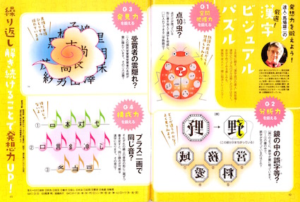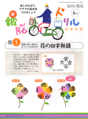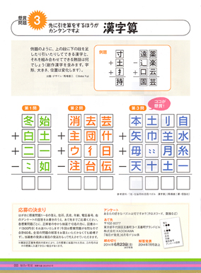 ● 連載しています「毎日が発見」(角川SSコミュニケーションズ)8月号の特別付録「鍛脳ドリル・夏の増強版」に、「国語・算数・理科・社会」を各一問、計4ページのパズルを新作を出題しています。