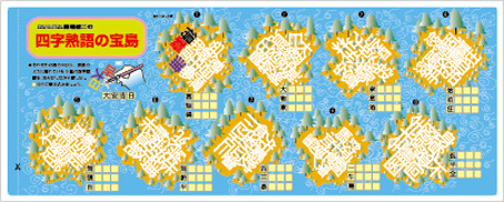 1ページに12の漢字が迷路のようになっていて、3組の四字熟語に組み合わせられるようになっています。四字熟語は日常会話やスピーチでも活用できる、時代を生き抜いてきた言葉の宝庫です。裏面にはその意味や類語も納められていますので、日本語の面白さも楽しめます。