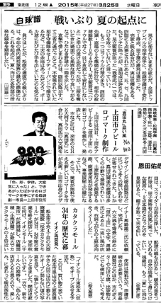 ●「上田西高のユニフォーム」の記事が新聞に掲載