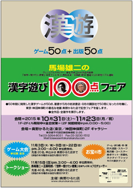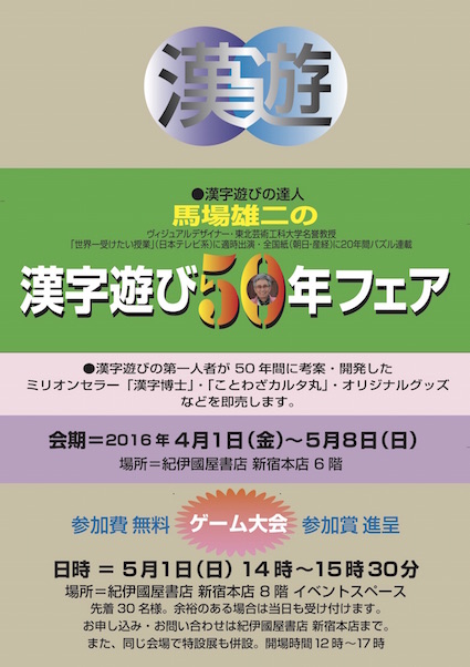 ● 銀座・伊東屋さん主催の「馬場雄二さんの漢字遊び祭り」(3月13日〜22日)は、ゲーム大会にも大勢のみなさんにご参加いただき、無事終了いたしました。