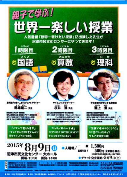 ● 9月26〜27日に、箱根・小涌園ホテルで「親子で受ける“世界一ためになる授業”を、「世界一受けたい授業」(日本テレビ系)でおなじみの西成活裕・金谷俊一郎両先生と共に行いました。