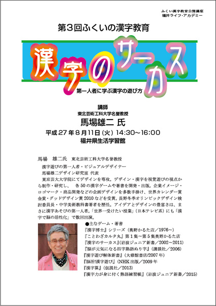 ● 9月16日に、「信州夏期大学」(上田市・丸子文化会館)で「漢字のデザインで脳を活性化」と題した講演をしました。