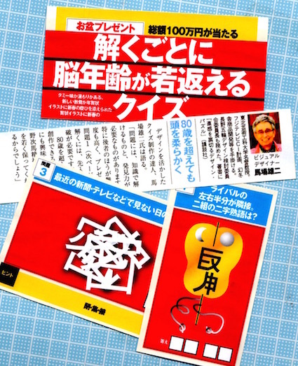 ● 朝日新聞日曜beに連載中の「馬場雄二のデザインQ」をモチーフに、パズルからの発想法をまとめた「漢字遊び解体新書」(1,365円)が、世界最大の名著「大漢和辞典」で知られている大修館書店から出版されました。