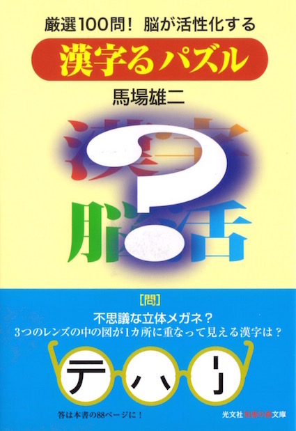 ● 漢字をモチーフに、見て楽しく解きながら、「直観力」・「分解力」・「観察力」などが鍛えられる100問のパズル本『脳活!漢字遊び』(NHK出版/700円+税)が発売になりました。