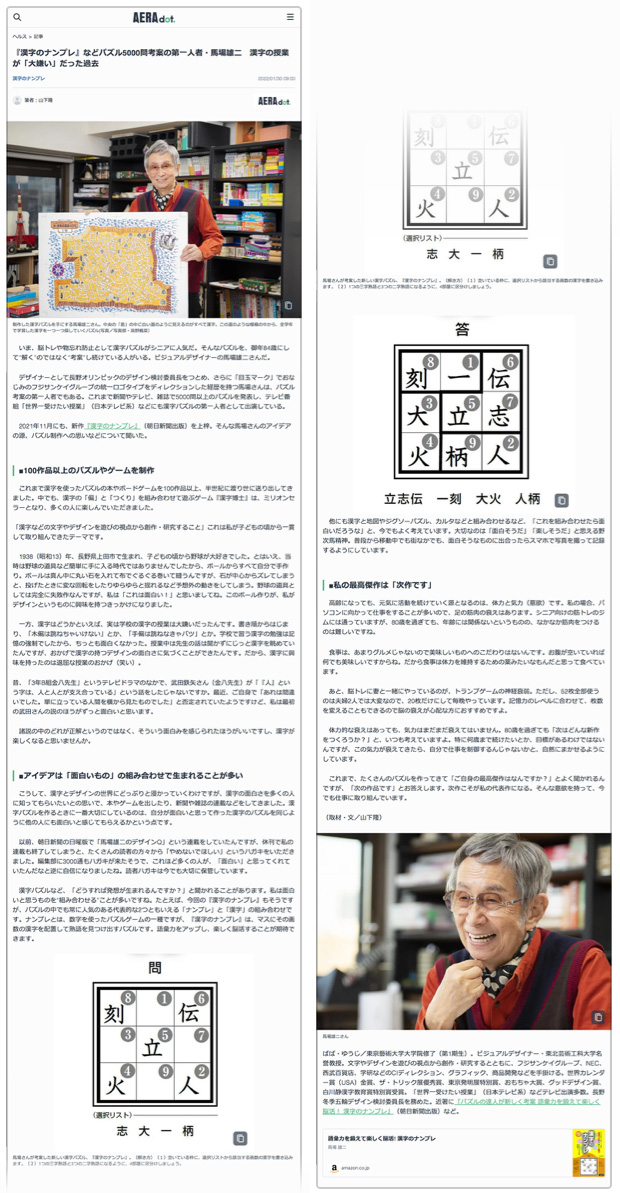 『漢字のナンプレ』などパズル5000問考案の第一人者・馬場雄二 漢字の授業が「大嫌い」だった過去