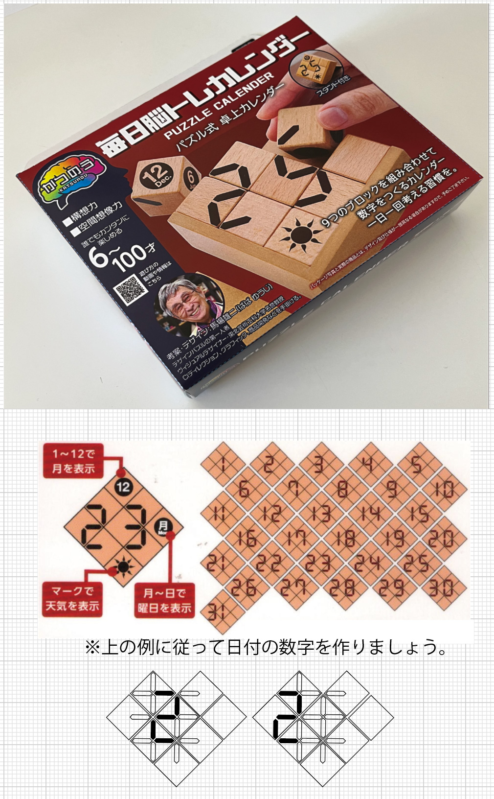 9個の各面へ1〜31の数字を配置することはなんとかできても、曜日など他の要素の表現にその駒が必要になった場合は、折角できた組み合わせを崩さなければならないなどエラー&トライの連続でした。